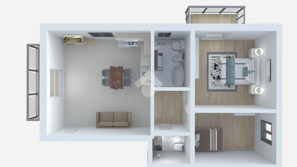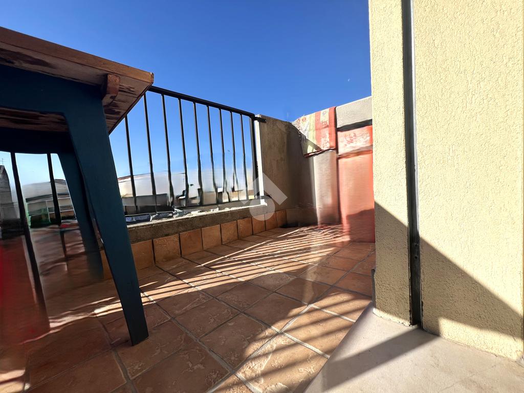 L’ingresso si apre su una luminosa zona giorno openspace con cucina a vista e accesso diretto al poggiolo.