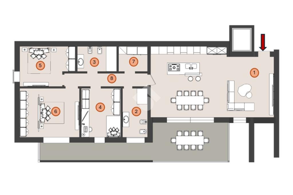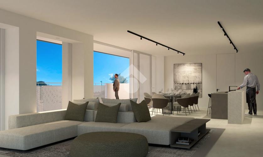 La soluzione proposta è un attico al piano secondo, dotato di ascensore, caratterizzato da un’introvabile zona living di circa 50 mq, tre camere da letto di cui la padronale di oltre 16 mq, due bagni ed un vano tecnico adibito a lavanderia.