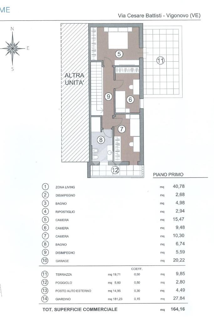 L’abitazione ha una superficie commerciale di circa 149 mq e dispone di ingresso pedonale e carraio indipendenti, un garage collegato internamente all’abitazione e un posto auto privato. Completano la proprietà un giardino esclusivo e ampie terrazze abitabili, ideali per vivere gli spazi esterni in piena privacy.