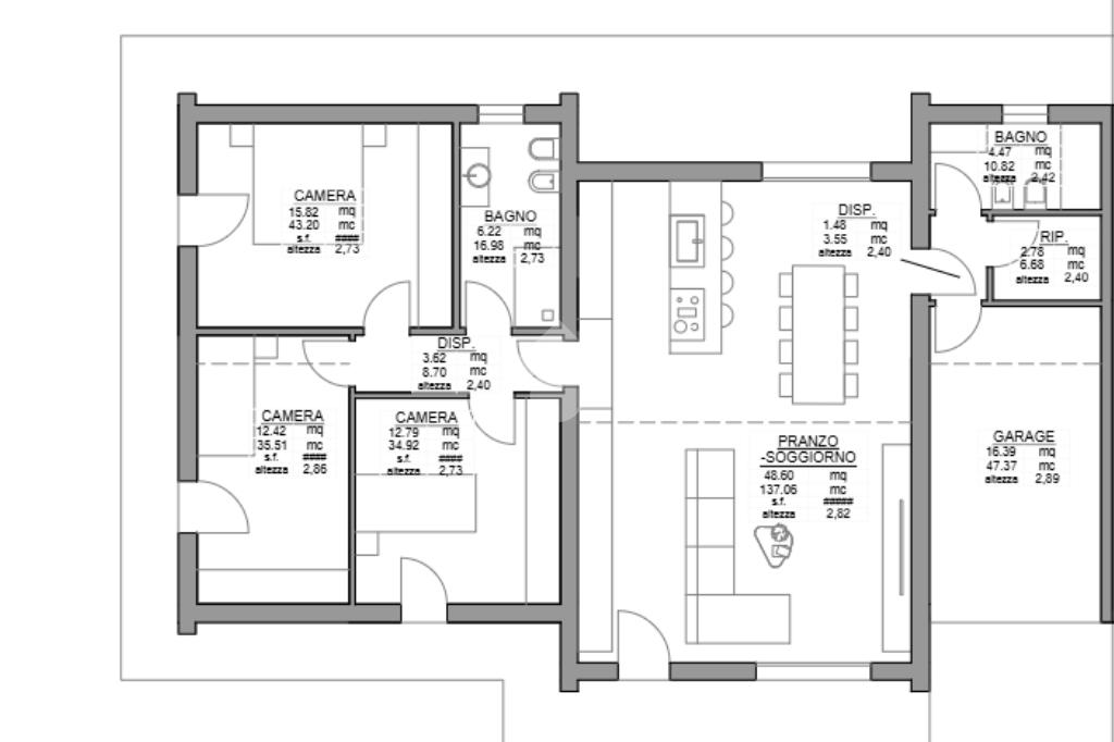Il garage è collegato direttamente all’abitazione e rappresenta l’unico punto di contatto con l’altra porzione. Adiacente ad esso si trovano un ripostiglio, utilizzabile anche come lavanderia, e il secondo bagno, anch’esso finestrato con doccia. All’interno della proprietà si possono comodamente ricavare due ulteriori posti auto. Sul retro è inoltre possibile realizzare una pompeiana, perfetta per pranzi e cene all’aperto.