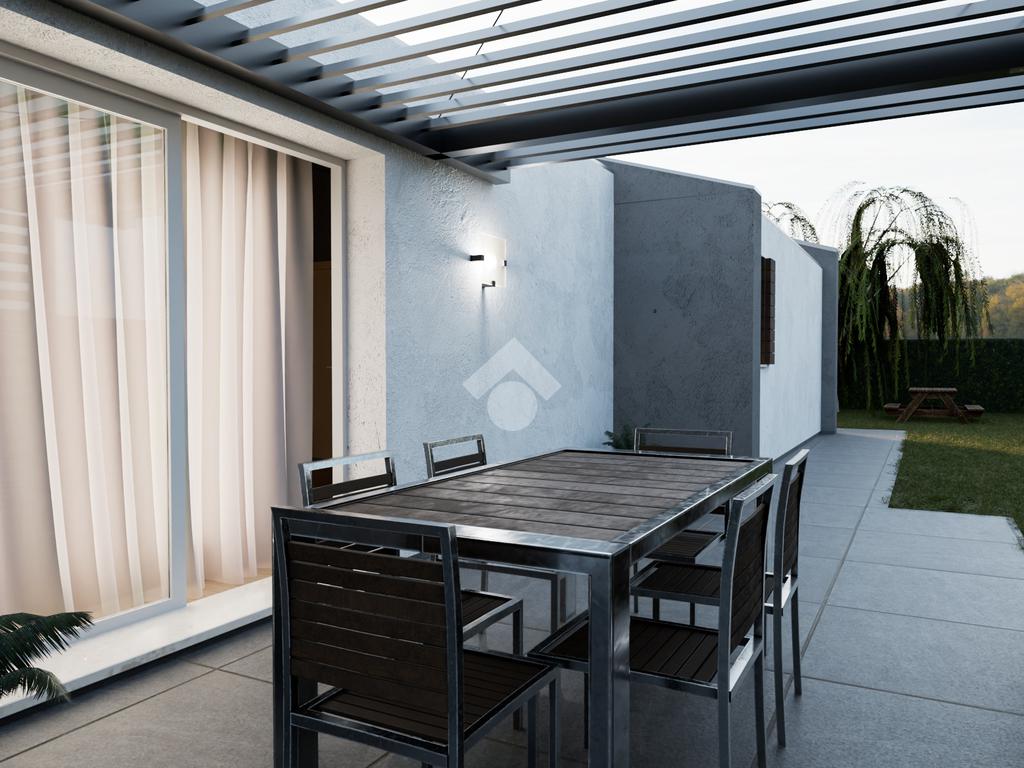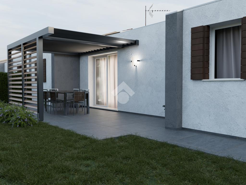 Proponiamo in vendita una porzione di bifamiliare di nuova costruzione, sviluppata interamente al piano terra e inserita in un contesto residenziale tranquillo, comodo al centro del paese.