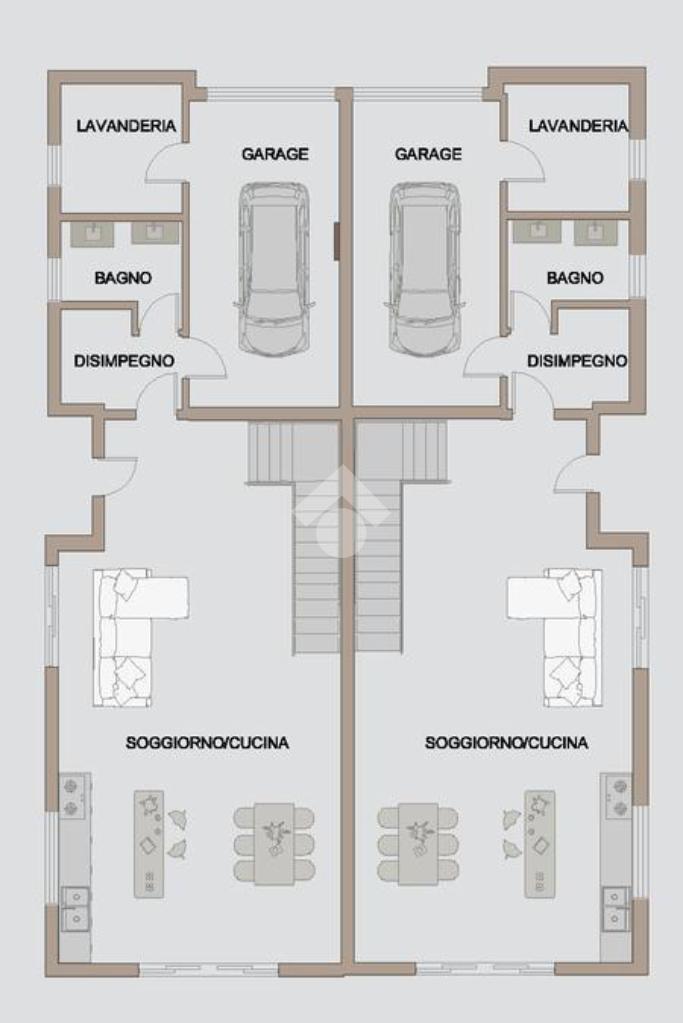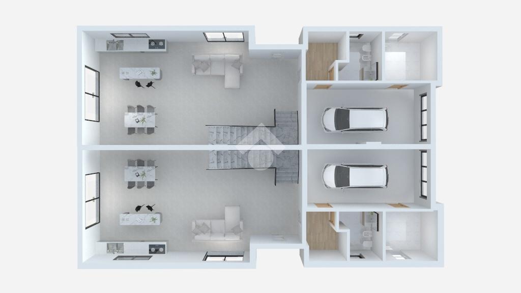 L’ingresso è completamente indipendente, sia pedonale che carraio, e l’immobile è circondato da un giardino privato. Al piano terra si sviluppa un’ampia e luminosa zona giorno open-space di circa 62 mq, con grandi superfici vetrate che garantiscono luminosità per tutto l’arco della giornata. Completano il piano un bagno di servizio, un pratico ripostiglio, un locale tecnico, la lavanderia e un garage collegato internamente all’abitazione.