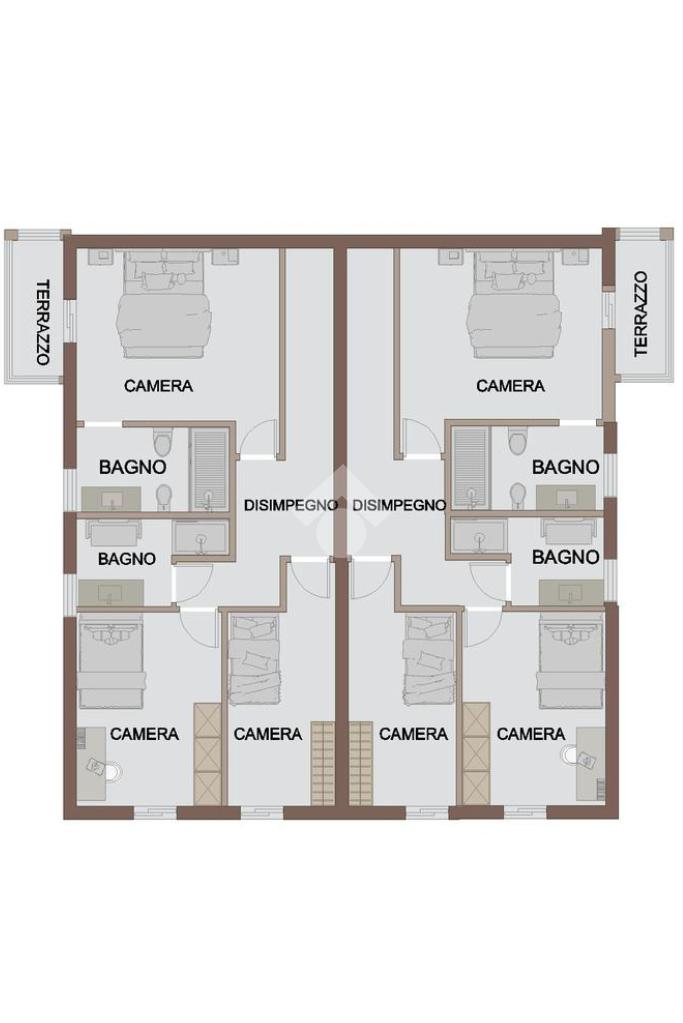 Al piano primo si trova la zona notte, composta da una camera matrimoniale con bagno padronale e accesso al poggiolo, due ulteriori camere da letto e un secondo bagno finestrato.
