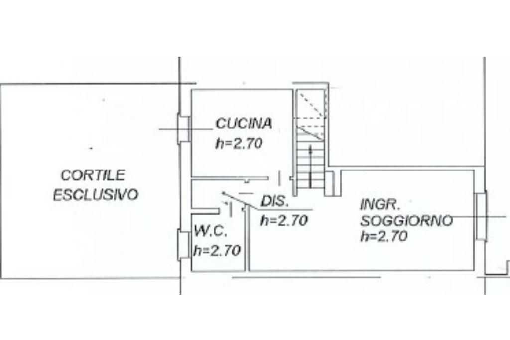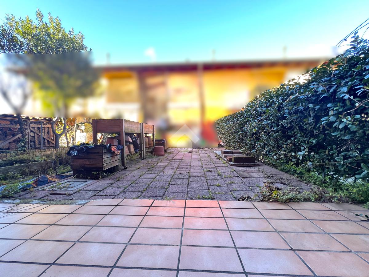 L’ingresso conduce alla zona giorno, spaziosa e ben illuminata, separata dalla cucina abitabile, la quale ha accesso diretto allo scoperto esterno sul retro. Quest’ultimo è attualmente pavimentato, ma offre la possibilità di essere trasformato in un’area verde.