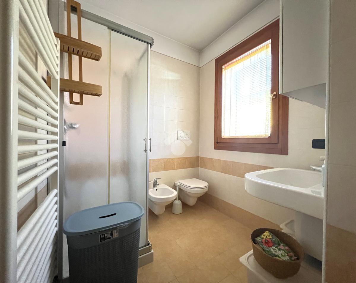 Il piano terra è completato da un antibagno, utilizzabile anche come lavanderia, e da un bagno finestrato dotato di doccia.
